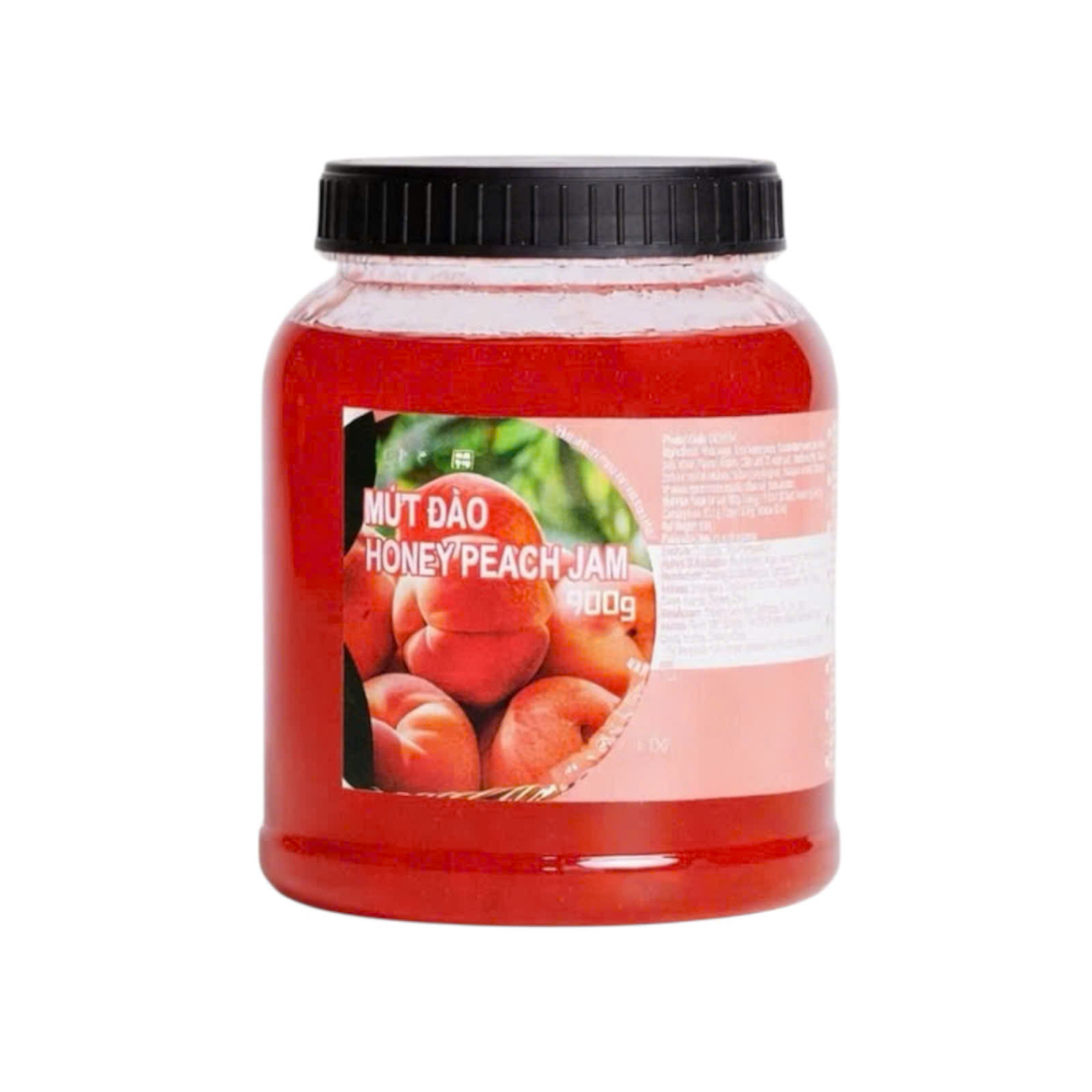 Thành phần: Đường trắng, đào mật ong thái hạt lựu 24%, nước ép đào cô đặc 8%, thịt quả đào 5%, nước, hương liệu nhân tạo (hương đào), chất điều chỉnh độ acid (Citric acid – INS 330, Acid malic (DL-) – INS 296, Trisodium citrate – INS 331(iii)), chất làm dày (Pectin – INS 440, Sodium carboxymethyl cellulose – INS 466), chất ổn định (Sodium polyphosphate – INS 452(i)), chất bảo quản (Potassium sorbate – INS 202), chất chống oxy hóa (Disodium ethylenediaminetetra acetate – INS 386), phẩm màu tổng hợp (Allura red AC – INS 129, Beta-caroten tổng hợp – INS 160a(i)).